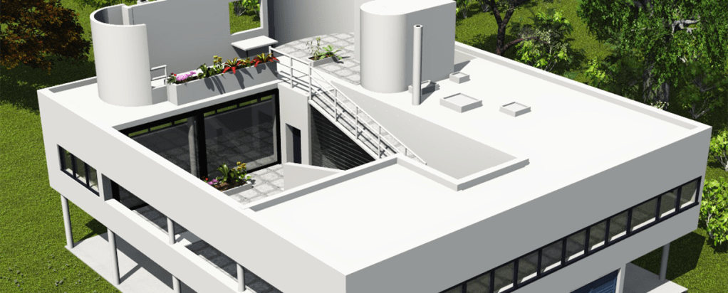 - Flat Roof:The flat roof is a replacement for the traditional pitched roof. It features a clean horizontal surface and can be used for a terrace, garden, or outdoor living space. It provides greater utility for the roof space which is commonly not used. It is one of Le Corbusier’s Five Points.